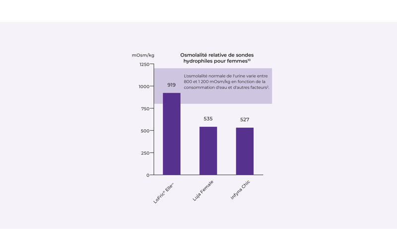 La surface optimale d'une sonde présente une osmolalité élevée, de préférence identique à celle de l'urine. Cela maintiendra l'équilibre entre la surface de la tubulure de la sonde et le corps et assurera une insertion et un retrait doux et sûrs 11.